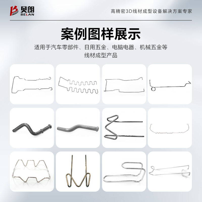 產(chǎn)品特點(diǎn):適用于生產(chǎn)汽車零部件、日用五金、電腦電器、機(jī)械五金等線材成型產(chǎn)品,從產(chǎn)品結(jié)構(gòu)上來講更適合生產(chǎn)框架類的產(chǎn)品,平板支撐更穩(wěn)定;設(shè)備帶有折彎、平移功能,能夠成型大部分高難度3D產(chǎn)品,可切換多種不同R角。
